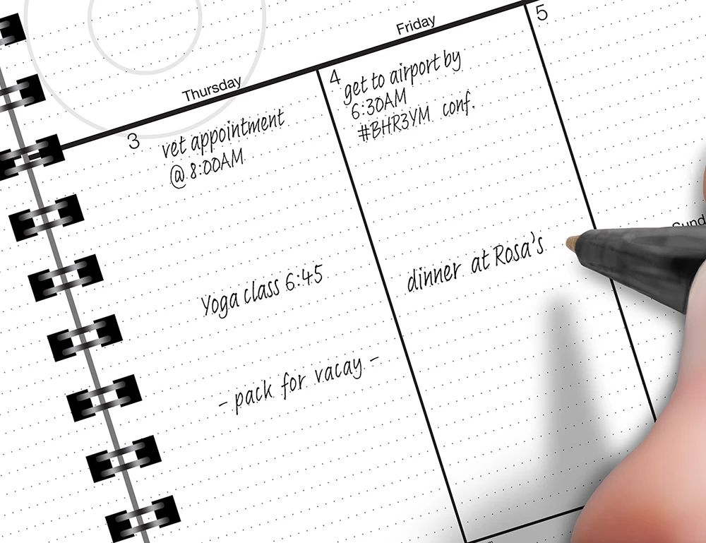 SIMPLIFIED MINIMALIST DESIGN — NEW and improved, leaving more writing room for the things that occur in your day!